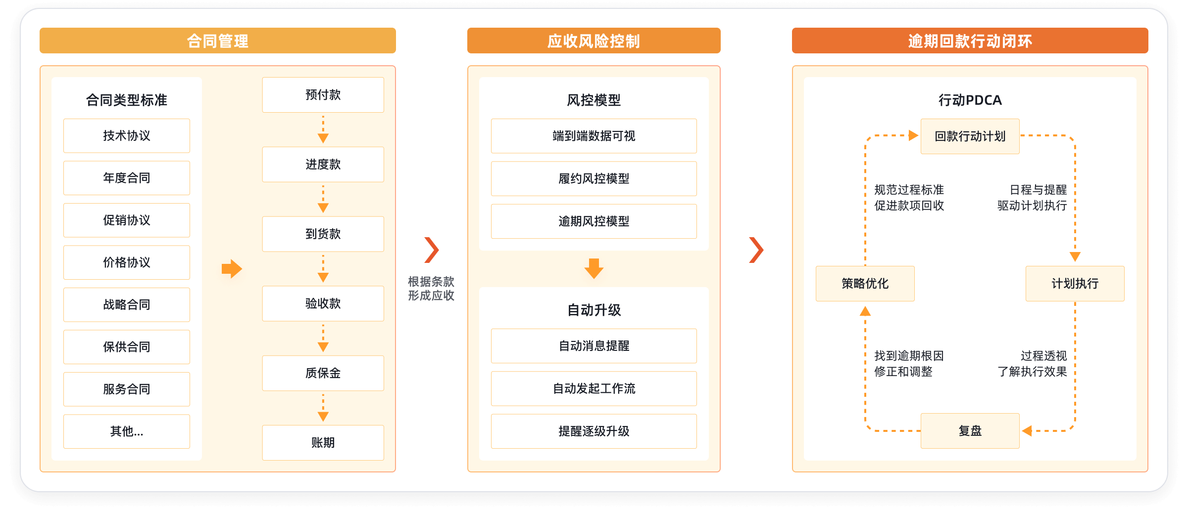 项目报价到订单、订单到回款的精细化、透视化管理,把控合同执行进度,管控应收风险,提升资金回笼率;