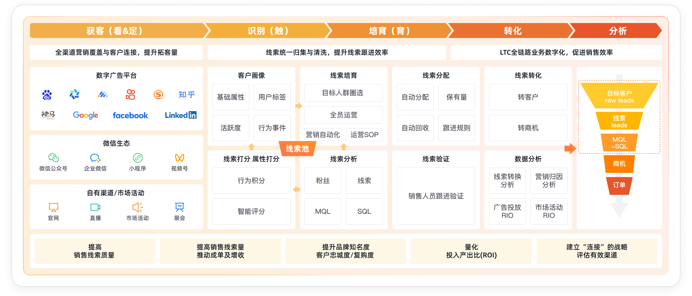 全渠道获客数据归集,建立企业线索库、私域流量池;