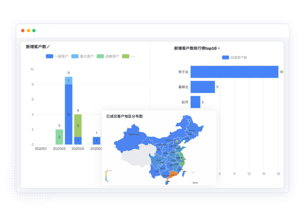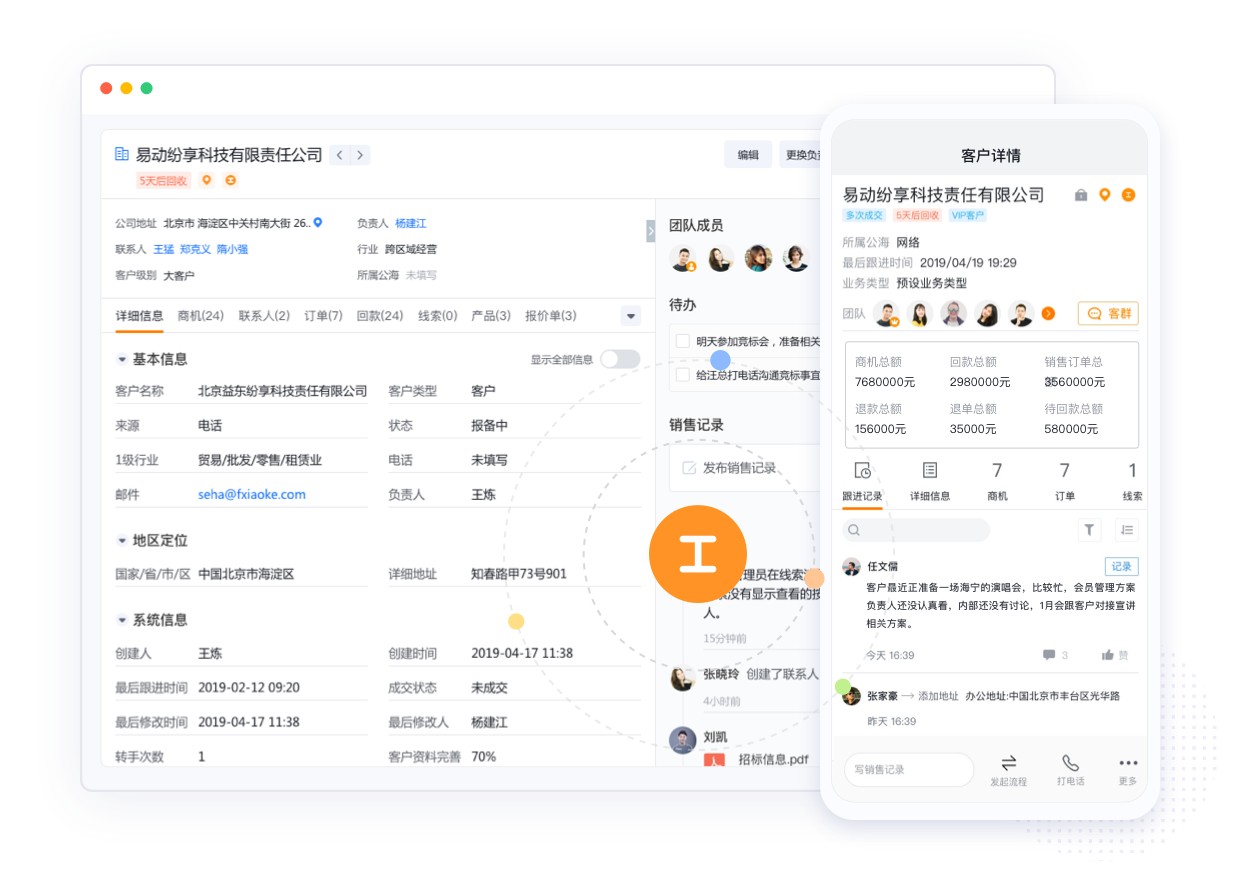 客户跟进、成交、交付、服务、回款等信息全方位归集;