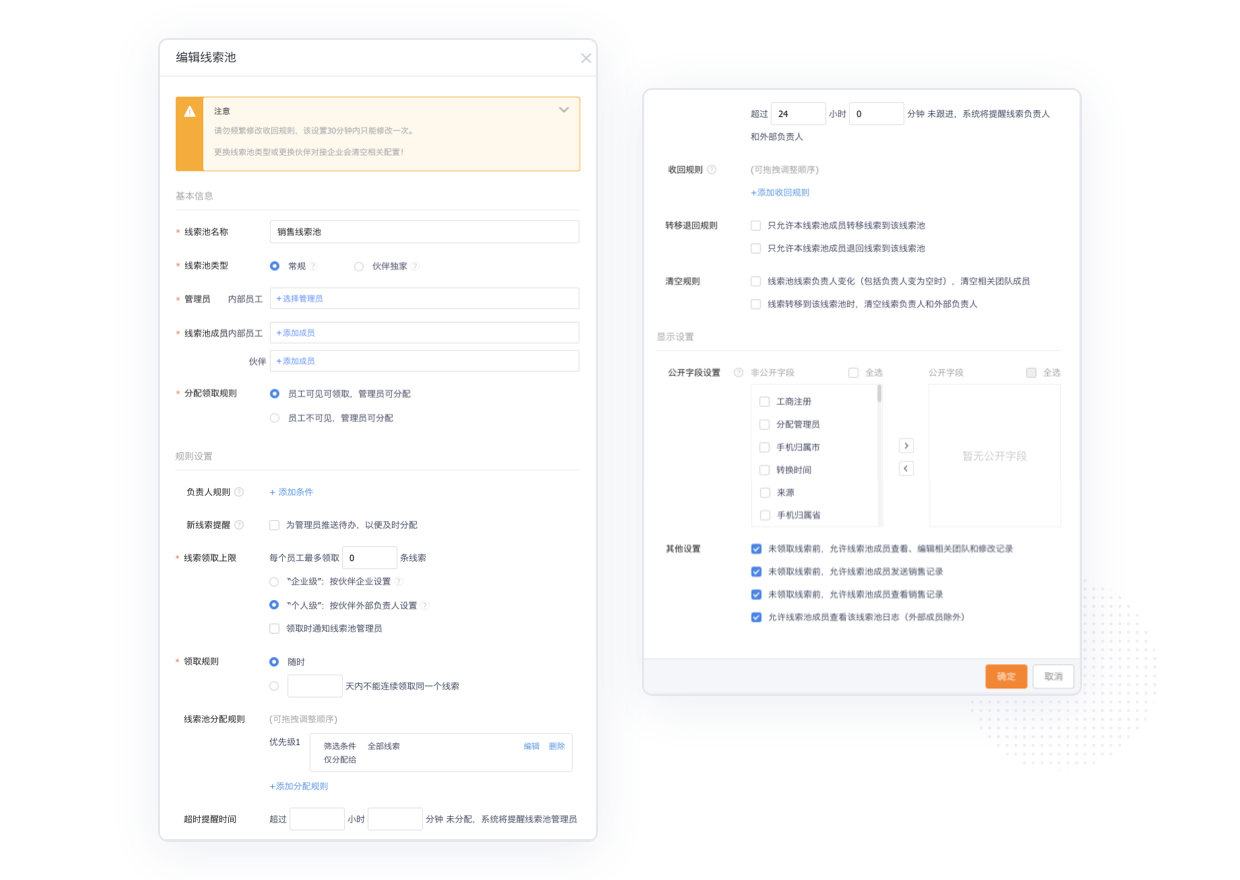 客户保有限定:灵活控制不同员工可以拥有不同类型的客户量上限,实 现人员能力与客户的最优化匹配。
