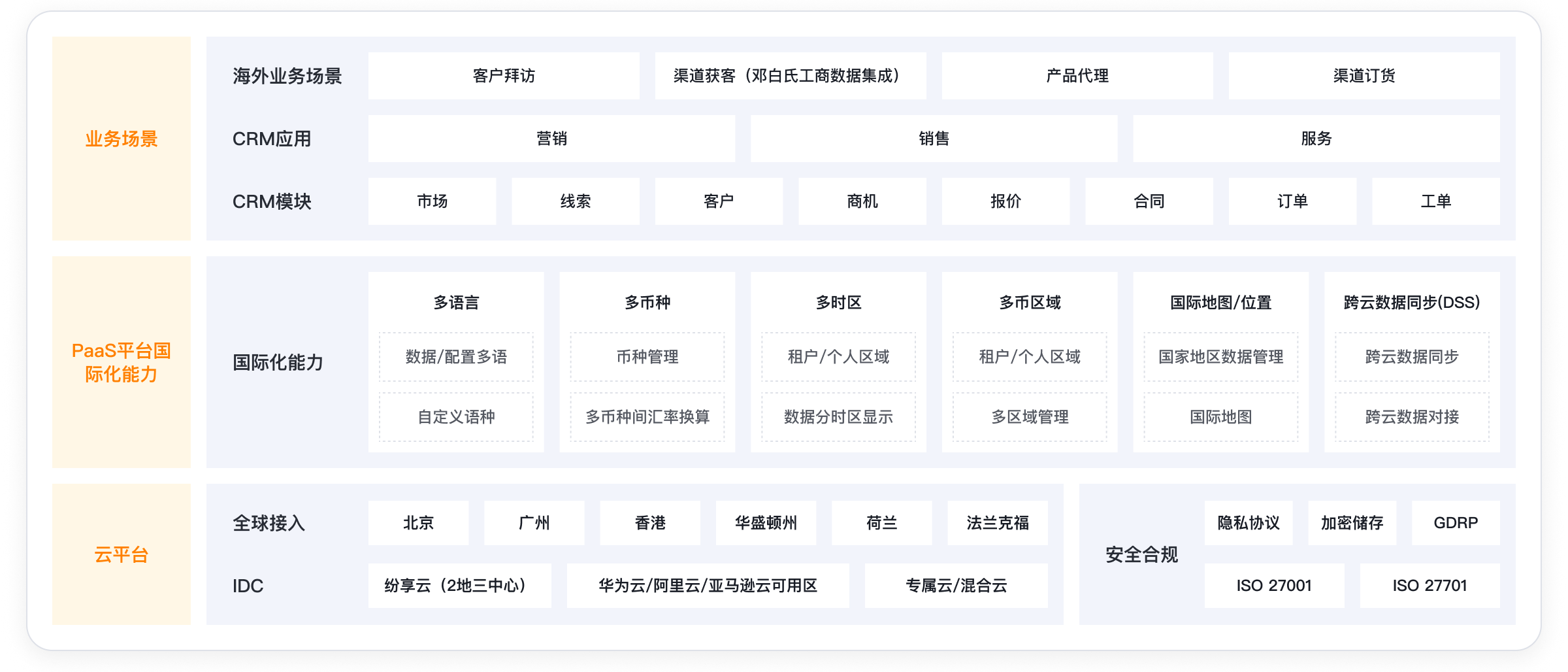 随着企业出海,对于CRM等管理工具的国际化能力提出了更高要求,需要支持多语言、多币种、多时区等功能,以适应全球化业务的需求。