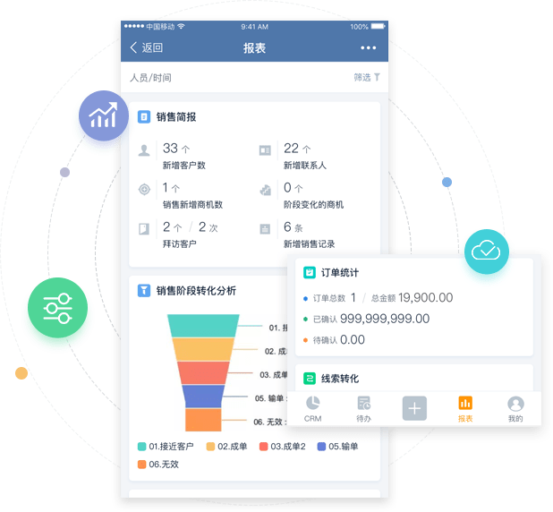 • 可视化的销售漏斗,让销售结果可预测,节奏有把控。