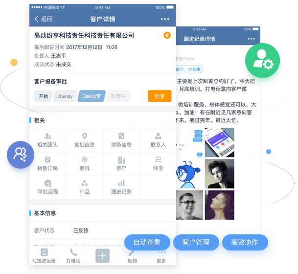 实时沟通与跟进客户,规范销售过程,客户拜访与销售行为相融合,为交易和回款提速;