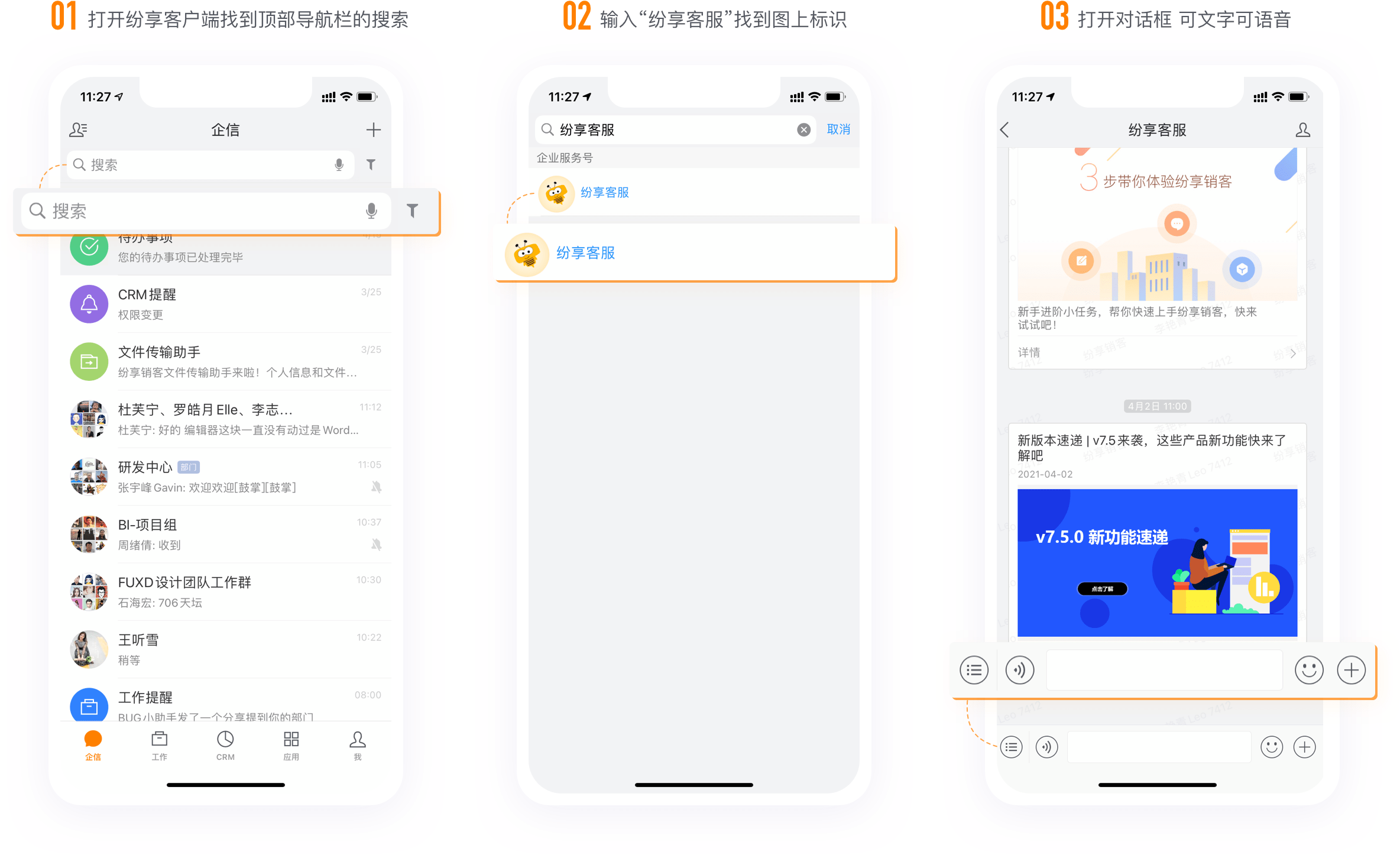 你可以在纷享销客对话列表中找到纷享客服,直接与你的专属客服沟通
